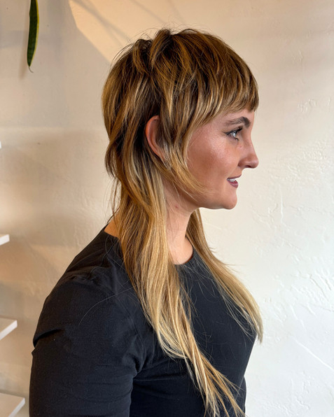 Kelle has been in the hair game since 1999, with a background in haircutting education and razor cutting expertise. Specializing in creating effortlessly lived-in haircuts and styles, she is passionate about embracing natural textured hair, and dedicated to providing a safe and inclusive space for everyone, offering ungendered haircuts and specialized textured haircutting techniques. Whether you're craving a trendy mullet, a chic shag haircut, a precise bob, or even a punk or anime-inspired look, Kelle is the expert to turn your hair dreams into reality. When Kelle isn't busy transforming hair, she's typically indulging her creative side. As a neurodivergent feminist and a mother of two, she loves expressing herself through painting, gardening, and sewing.